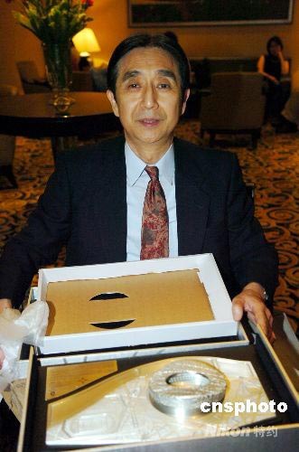 日本友人展示胡錦濤贈予的鳥巢模型