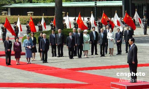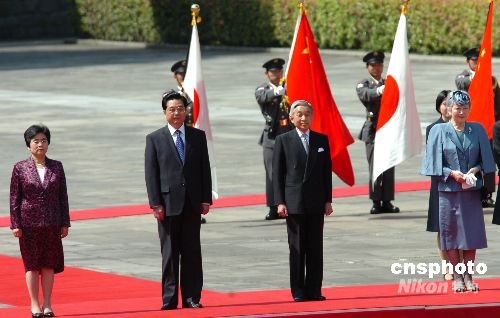 圖:胡錦濤出席日本天皇舉行的歡迎儀式