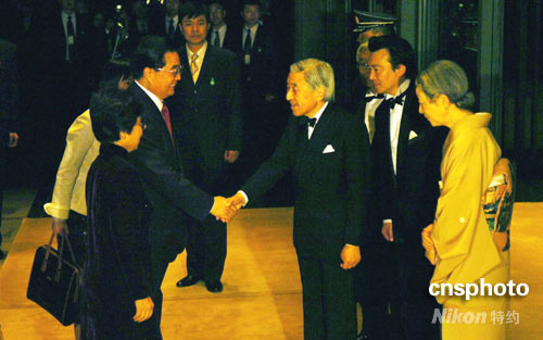 圖:日本天皇夫婦歡迎胡錦濤及夫人
