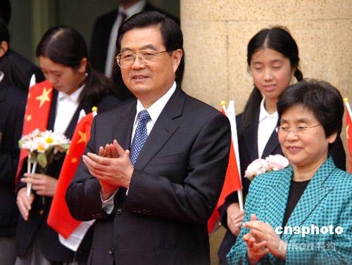 胡錦濤在日本橫濱山手中華學(xué)?赐麕熒
