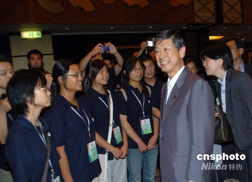 圖:日外務(wù)大臣慰問四川地震災(zāi)區(qū)訪日青年
