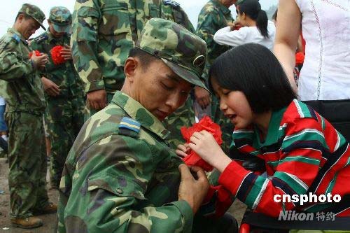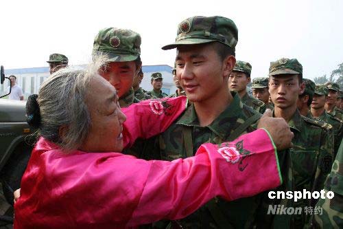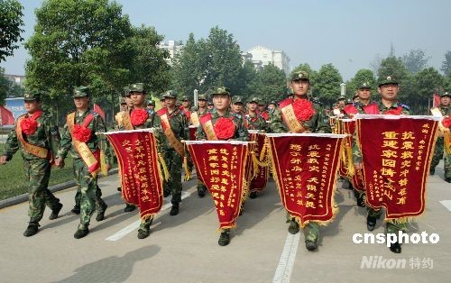 圖:濟南軍區(qū)駐許昌某部從抗震前線凱旋
