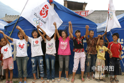 圖:重災(zāi)區(qū)孩子們用歌聲祝福奧運平安