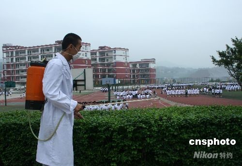 圖:四川對地震災(zāi)區(qū)學(xué)校進行全面消毒