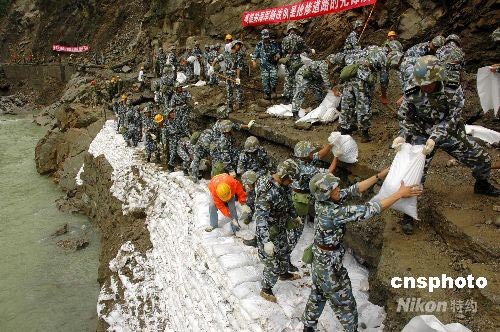 圖:鐵軍官兵搬遷帳篷準(zhǔn)備重建新映秀