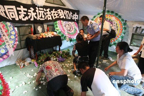 都江堰民眾自發(fā)悼念抗震救災(zāi)烈士武文斌