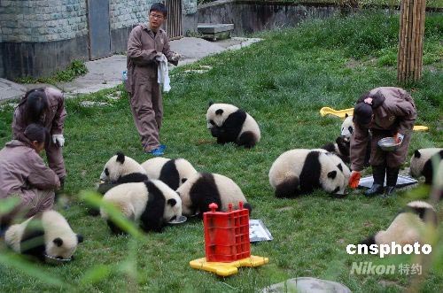 圖:臥龍精心呵護(hù)“幼兒大熊貓”