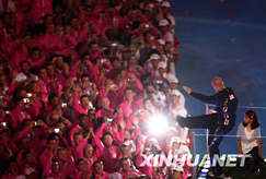 煙花再次璀璨,歌聲匯成海洋。北京奧運會圣火緩緩熄滅,五環(huán)旗交與英倫。十六天,健兒們馳騁賽場屢創(chuàng)佳績;十六天,東道主盡心盡力無微不至;十六天,朋友們相聚言歡增進(jìn)情誼;今宵,中國贏得贊譽(yù)——“無與倫比”。