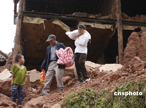 圖:云南姚安地震災(zāi)區(qū)災(zāi)民領(lǐng)取救災(zāi)物資