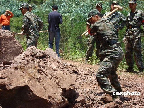 降雨導(dǎo)致山體滑坡 通往云南地震災(zāi)區(qū)道路被阻(2)