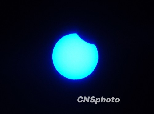 中國各地觀測日食奇觀:連云港上空出現(xiàn)日偏食景觀
