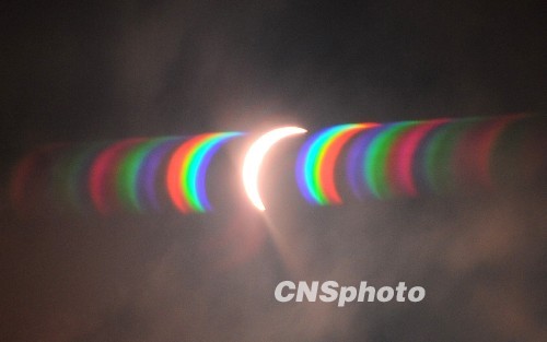 中國各地觀測日食奇觀:日全食重慶“生光”