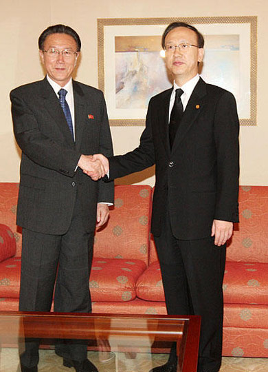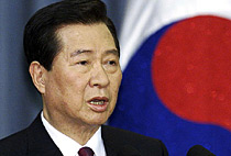 圖:韓國總統(tǒng)李明博會見朝鮮吊唁團