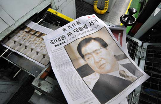 韓國媒體關注前總統(tǒng)金大中逝世消息