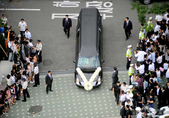 圖:韓國前總統(tǒng)金大中靈柩運往國會靈堂