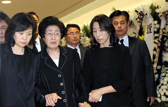 圖:韓國前總統(tǒng)金大中夫人前往悼念廳