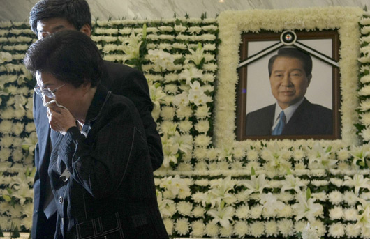 圖:韓國總統(tǒng)李明博吊唁金大中