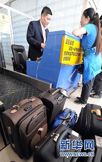圖:伊春機場乘客在辦理登機手續(xù)