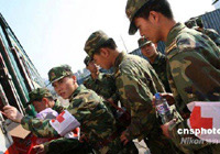 醫(yī)務(wù)工作者救助來(lái)自都江堰地震傷員