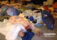 成都地震災(zāi)區(qū)民眾露宿街頭立交橋下