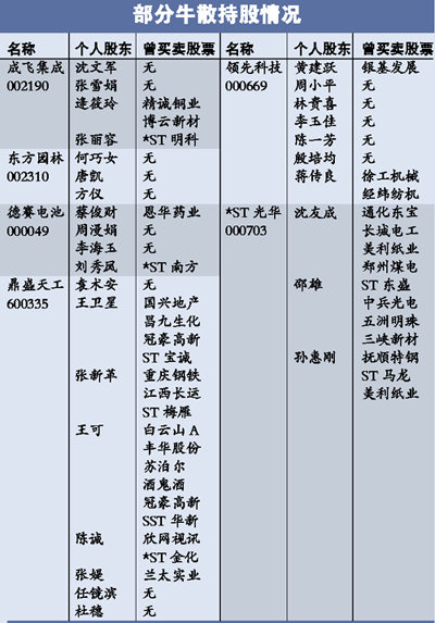 前期的牛散劉芳、葉晶、黃木順、鄒瀚樞和錢小妹等,盡管受到的關(guān)注減少,但并未從上市公司中消失。半年報(bào)顯示,劉芳和葉晶又雙雙介入澳洋順昌,分別持有147萬股和89萬股。錢小妹則押寶南洋科技和漢王科技。