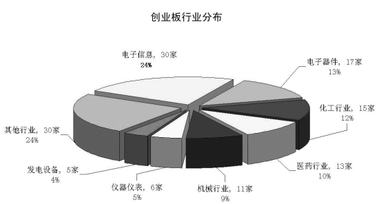 行業(yè)上看,創(chuàng)業(yè)板股共涉及23個(gè)行業(yè),其中電子信息股30只,占總數(shù)的24%,穩(wěn)居榜首;電子器件則有17只個(gè)股,占比13%緊隨其后。若加上儀器儀表、發(fā)電設(shè)備的11只個(gè)股,則泛電子類品種占創(chuàng)業(yè)板的比重將超過45%,今年4月30日上市的第11批創(chuàng)業(yè)板股,更全屬該行業(yè),顯示出其于國家大力扶持新興產(chǎn)業(yè)中的龍頭氣質(zhì)。同時(shí),醫(yī)藥、化工、機(jī)械等行業(yè)亦有10家以上的創(chuàng)業(yè)板股;傳媒娛樂、環(huán)保行業(yè)則分別貢獻(xiàn)4只和3只個(gè)股。(圖2)