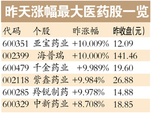近日,國家工信部、衛(wèi)生部、國家食品藥品監(jiān)督管理局聯(lián)合發(fā)布《關(guān)于加快醫(yī)藥行業(yè)結(jié)構(gòu)調(diào)整的指導(dǎo)意見》,支持我國醫(yī)藥產(chǎn)業(yè)發(fā)展。并且對(duì)于對(duì)大型企業(yè)跨省(區(qū)、市)重組后的改擴(kuò)項(xiàng)目?jī)?yōu)先予以核準(zhǔn),在股票發(fā)行、企業(yè)債券、中期票據(jù)以及銀行貸款方面給予支持,從而提高整個(gè)行業(yè)的產(chǎn)業(yè)集中度,培養(yǎng)大型醫(yī)藥集團(tuán),提高醫(yī)藥產(chǎn)業(yè)集中度。受此消息影響,昨天醫(yī)藥板塊表現(xiàn)十分搶眼。