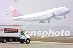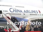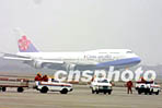 載有春節(jié)返鄉(xiāng)探親臺(tái)商及其眷屬"華航"包機(jī)飛離浦東機(jī)場