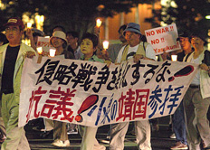 日本首相小泉訪問渥太華期間,9個反戰(zhàn)團體6月28日在溫哥華日本領(lǐng)事館門前示威抗議,高呼反戰(zhàn)口號,要求日本政府正視二戰(zhàn)歷史,終止修改憲法第九條。抗議團體的代表向日本領(lǐng)事館遞交了一封給小泉的公開信,指摘小泉參拜靖國神社傷害東亞鄰國的和平友好關(guān)系,并違反“舊金山條約”....<全文>