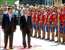 日本首相小泉純一郎8月10日上午乘專機出發(fā),直飛蒙古國首都烏蘭巴托,展開了他為期兩天的蒙古之行。分析人士認為,這次小泉謝幕之行出訪蒙古以金錢鋪路,重點看重蒙古豐富地下資源。日本外務省發(fā)言人表示,在訪問期間小泉將向蒙古許諾提供6億日元(約合520萬美元)援助....<全文>