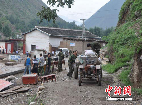 隴南文縣石坊鄉(xiāng)舊關(guān)村發(fā)生特大泥石流災(zāi)害后,該村民兵預(yù)備役的民兵們廢寢忘食,幫助受災(zāi)群眾緊急轉(zhuǎn)移被雨水浸泡過的糧食。隴南市8月11日晚至12日遭遇了特大暴雨襲擊,截至13日17時(shí),隴南市特大暴雨已致25人遇難,19人失蹤,14.8萬余人受災(zāi),86人受傷,成縣黃渚鎮(zhèn)3012人被困,轉(zhuǎn)移安置一萬余人,6000多人出現(xiàn)飲水困難。