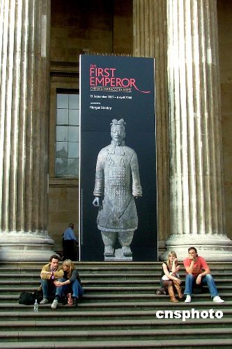 從即日起至2008年4月6日止,倫敦大英帝國博物館內(nèi)展出從西安新出土的兵馬俑歌妓、紅馬等上百件文物。英國華人廚師還在展館現(xiàn)場示范中國點(diǎn)心蒸肉包子,倫敦刮起“中國熱”。中新社發(fā) 盧威 攝