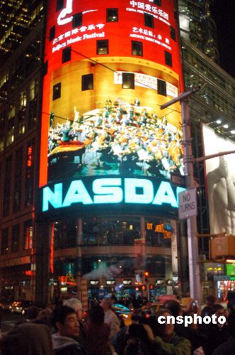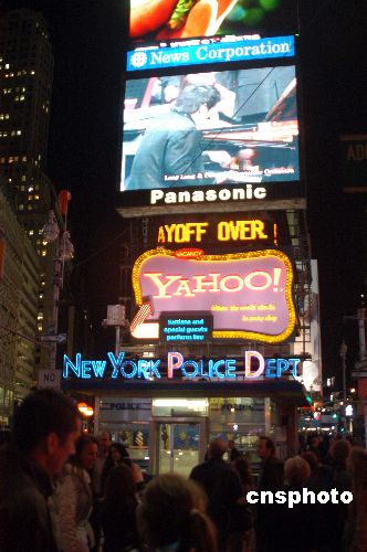 中國(guó)著名青年鋼琴家郎朗與中國(guó)愛(ài)樂(lè)樂(lè)團(tuán)在北京第十屆國(guó)際音樂(lè)節(jié)上合作演出鋼琴協(xié)奏曲《黃河》,美東時(shí)間十月二十五日晚七時(shí),紐約地標(biāo)時(shí)代廣場(chǎng)前的巨大電子顯示屏組進(jìn)行轉(zhuǎn)播,吸引大量來(lái)自全球各地的旅游者和當(dāng)?shù)厝笋v足欣賞。中新社發(fā) 鄧悅 攝
