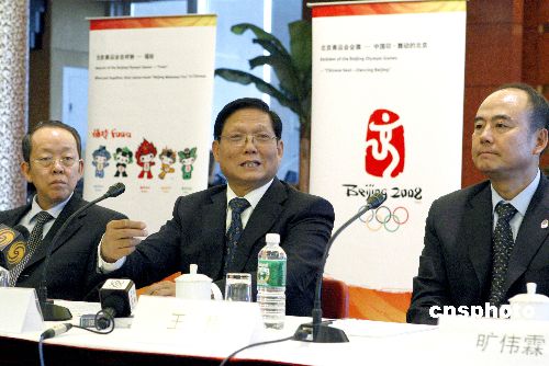 北京市委書記、北京奧組委主席劉淇十一月一日在紐約向記者介紹北京二00八年奧運會籌備情況時表示,北京將履行在申辦奧運會時做出的改善空氣質(zhì)量的承諾,會在奧運會期間根據(jù)實際情況采取綜合措施,全力為各國運動員提供良好的競賽環(huán)境。中新社發(fā) 李靜 攝