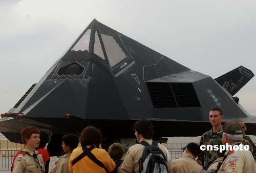 美國為紀(jì)念六十年前成立空軍,十一月在內(nèi)華達(dá)州的內(nèi)利斯空軍基地舉辦大規(guī)模飛機展示,民眾前來觀看世界上第一種可正式作戰(zhàn)的隱身戰(zhàn)斗機F-117A“夜鷹”,它專門用于夜間攻擊。中新社發(fā) 賈國榮 攝