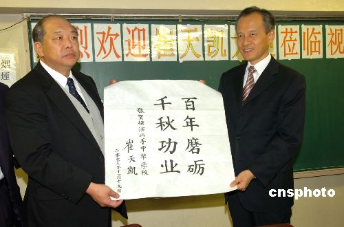 11月19日上午,上任伊始的中國駐日大使崔天凱專程來到日本橫濱山手中華學校,看望這座具有百年歷史的僑校師生,中國駐日使館公使孔鉉佑、中國駐日使館總領事于淑媛陪同。崔天凱大使一行受到該校師生的熱烈歡迎。中新社發(fā) 滕劍峰 攝