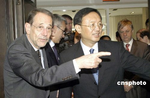 當(dāng)?shù)貢r(shí)間11月26日,中國(guó)外交部長(zhǎng)楊潔篪(右)在美國(guó)首都華盛頓會(huì)見(jiàn)了前來(lái)參加中東和會(huì)的歐盟理事會(huì)秘書(shū)長(zhǎng)兼歐盟負(fù)責(zé)外交和安全政策的高級(jí)代表索拉納。中新社發(fā) 邱江波 攝
