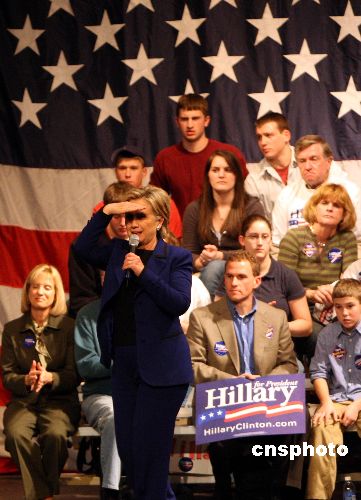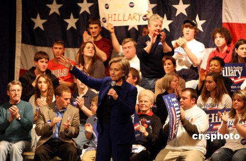 1月7日,美國(guó)民主黨總統(tǒng)競(jìng)選人希拉里在新罕布什爾州的沙倫市進(jìn)行該州初選前最后的競(jìng)選活動(dòng)。希拉里此前在艾奧瓦州初選落敗,目前在新州民調(diào)亦處于落后,競(jìng)選形勢(shì)不容樂(lè)觀。中新社發(fā) 李靜 攝