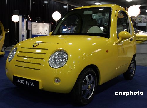 當(dāng)?shù)貢r(shí)間1月14日,一款名為“詩經(jīng)”的迷你電池車在2008北美車展上與國際名車同臺(tái)展示。這款由中國民營企業(yè)推出的迷你電池車,以中國文化和環(huán)保為理念,首次赴北美參展,由此希望進(jìn)軍北美和歐洲市場。中新社發(fā) 潘索菲 攝