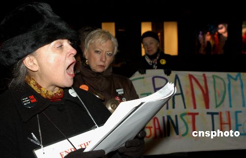 圖:美國祖母反戰(zhàn)團(tuán)集會(huì)要求政府結(jié)束伊戰(zhàn)