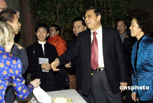 當?shù)貢r間一月二十日晚,中國駐美大使周文重和夫人、駐美使館教育處公使銜參贊尤少忠等,來到美國馬里蘭州巴爾迪摩市,向大華盛頓地區(qū)華人祝賀農(nóng)歷新年。圖為周文重大使(前中)和夫人(右一),與華人社團領袖握手互相道賀。中新社發(fā) 邱江波 攝