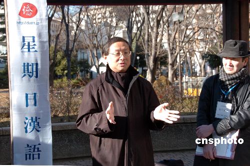 1月27日下午,在日本訪問的蔡建國教授來到東京星期日漢語角,和日本朋友進(jìn)行交流。蔡建國教授介紹了中國改革開放30年取得的成果,就中日文化交流、北京奧運(yùn)會等話題進(jìn)行演講。蔡建國博士原是日本新瀉國際情報大學(xué)教授、現(xiàn)任上海同濟(jì)大學(xué)亞太研究中心主任兼國際文化交流學(xué)院院長、致公黨中央常委,日前當(dāng)選第十一屆全國政協(xié)委員。中新社發(fā) 段躍中 攝