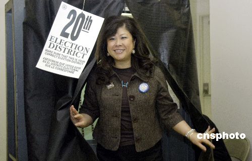 圖為其中之一的華埠第二十選區(qū)的司徒仲菁5日在孔子大廈投完一票。她是希拉里競選團隊的紐約亞裔社區(qū)顧問。