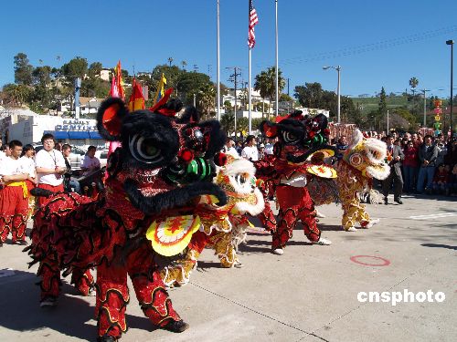 當?shù)貢r間2月7日,大年初一清早,洛杉磯中國城越華會僑團舉行新年團拜,并以舞獅舞龍,燃放爆竹拉開新春第一天序幕,吸引上千來自越南的華人華僑共襄盛舉。中新社發(fā) 盧威 攝