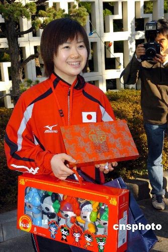 圖:日本乒乓球運(yùn)動員福原愛喜獲奧運(yùn)福娃