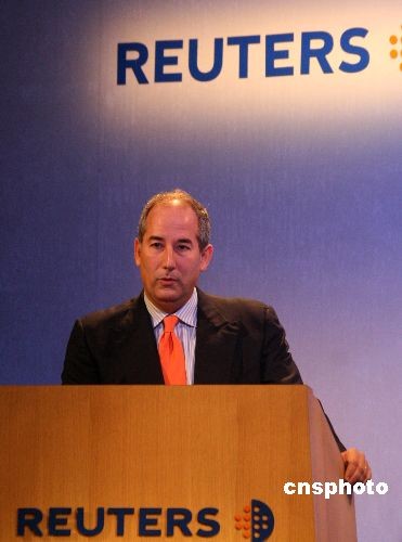 圖為路透社首席執(zhí)行官湯姆·格羅瑟(Tom Glocer)致歡迎辭。