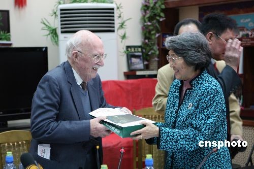 3月24日,俄中友協(xié)在莫斯科舉辦紀(jì)念周恩來(lái)誕辰110周年活動(dòng)。圖為周恩來(lái)的侄女、原中國(guó)新聞社副社長(zhǎng)周秉德向俄中友協(xié)名譽(yù)主席、著名漢學(xué)家齊赫文斯基贈(zèng)送自己撰寫(xiě)的《我的伯父周恩來(lái)》一書(shū)俄文版。齊赫文斯基在1949年前后擔(dān)任蘇聯(lián)駐北平(京)總領(lǐng)事,見(jiàn)證了中蘇建交的歷史。中新社發(fā) 田冰 攝