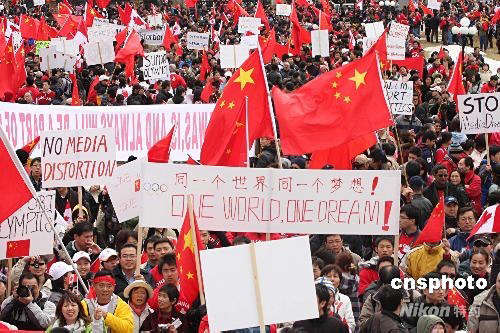 當地時間4月13日下午,近萬名來自加拿大各地的華人聚集在首都渥太華國會山廣場,舉行“宣傳西藏真相,維護祖國統一”大型集會活動。集會全程充滿“和平、友愛”的熱烈氣氛,組織者宣讀了中英文集會聲明和致加拿大總理哈珀公開信,表達海外華人“支持一個中國、支持北京奧運會,反對暴力”的心愿。中新社發(fā) 捷克佳 攝