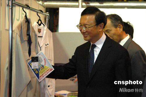 中國外長楊潔篪參觀日本塑料瓶“再生”服裝