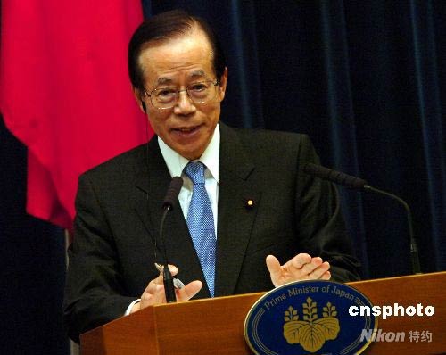5月7日,中國國家主席胡錦濤與日本首相福田康夫在東京共同會見記者。福田首相表示,日方期待北京奧運會取得圓滿成功,并愿全力支持北京奧運。圖為福田康夫首相在記者會上回答提問。 中新社發(fā) 關(guān)妍 攝